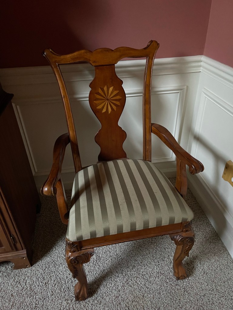 I don’t know the story “why” this table had its original even number of chairs. Probably because the wife died first, but there were an even number of chairs that matched with this table and I knew that was rare.